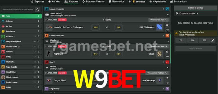 A aposta W9Bet oferece aos jogadores a experiência mais conveniente de apostas em eSports!